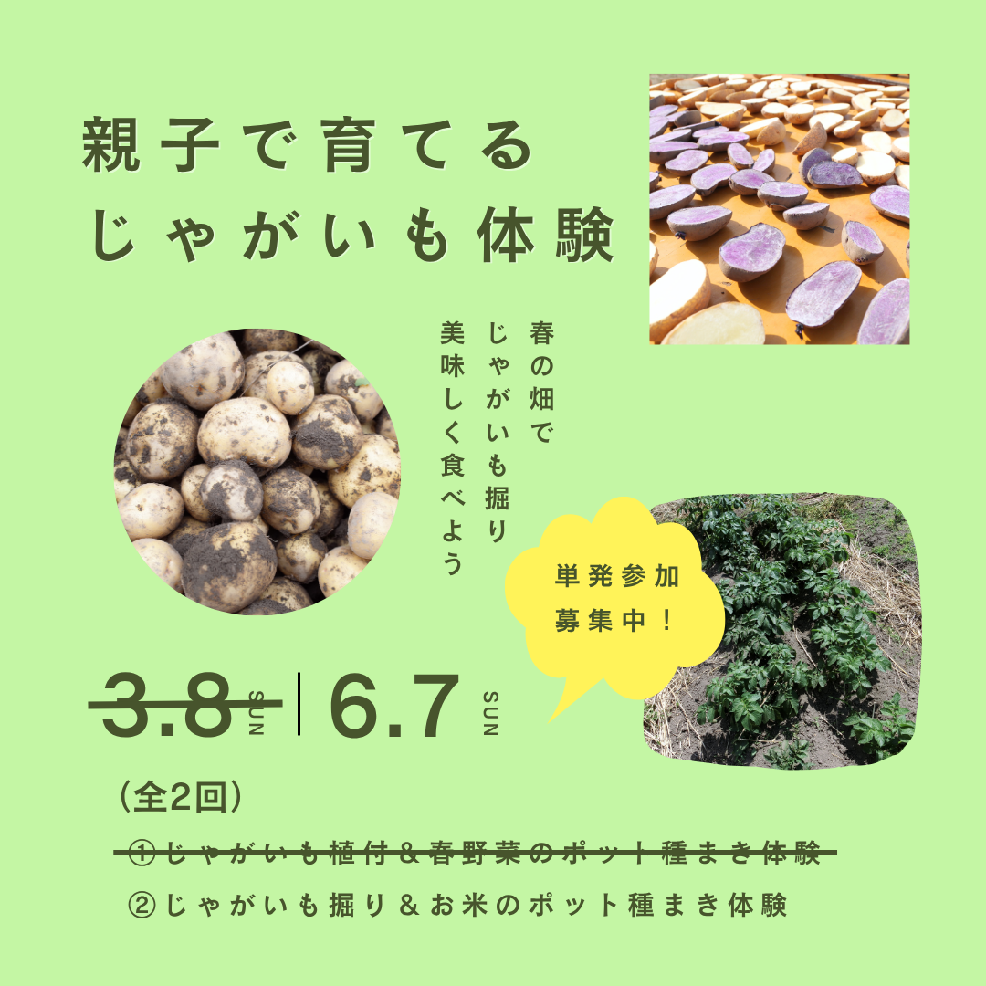 ホーム イベント一覧 アウトドア アウトドア一覧 NEW 受付中 開催日: 2026/6/7(日) 6/7(日)親子で育てるじゃがいも体験 アウトドア畑仕事くにたちはたけんぼ農体験自然体験食親子親子体験会 NEW 受付中 開催日: 2026/5/6(水) 5/6はたけんぼ お馬さんとオープンデイ! アウトドアくにたちはたけんぼ農体験生き物自然体験自然遊び親子デイキャンプ 受付中 開催日: DAY1 5/10(土)9:30〜12:00 DAY2 9/13(日)9:30〜16:00 5/10〜綿を育てて糸を紡ぎ、手織りの作品制作 くにたちはたけんぼ農体験畑仕事自然体験自然遊び親子つちのこや暮らし手しごとアウトドア大人 受付中 開催日: 2026/5/10(日) 5/10(日)御岳でラフティングに挑戦!(小中学生、小学生以上親子) 自然体験自然遊び子どもの居場所アウトドアデイキャンプ 受付中 開催日: 2026/4/29(水) 4/29(水祝)江の島探検&磯遊びを楽しもう!(親子もOK) 自然遊び子どもの居場所アウトドアデイキャンプ自然体験 受付終了 開催日: 2026年3月7日(土)-8日(日) 2026春 高尾山散策&はたけんぼで一泊キャンプをしよう くにたちはたけんぼ自然遊び子どもの居場所アウトドア自然体験 受付中 開催日: 2026/2/18(水) 2/18(水) はたけんぼサポーターズ 活動日 リーブノートレースはたけんぼサポーターズ保護者交流アウトドア自然体験くにたちはたけんぼ農体験自然遊び畑仕事 受付中 開催日: 全2回:3月8日・6月7日(日) 3/8・6/7(日)親子で育てるじゃがいも体験(全2回) 農体験畑仕事親子食親子体験会アウトドア自然体験くにたちはたけんぼ 受付中 開催日: 2026/3/29(日) 3/29(日)こどもまつり 親子食アウトドア自然体験くにたちはたけんぼ 受付中 開催日: 2026/3/14(土) 3/14(土)放課後クラブニコニコデイキャンプ(親子体験会) 子どもの居場所放課後クラブニコニコ第三の居場所アウトドア親子体験会自然体験くにたちはたけんぼデイキャンプ自然遊び畑仕事 受付中 開催日: 2026/2/11(水) 2/11(祝・水)日帰りスキーin車山高原 アウトドア自然体験デイキャンプ自然遊び子どもの居場所 受付中 開催日: 2026/2/11(水) やぼたん農園祭2026 アウトドア生き物食くにたちはたけんぼ農体験大人リトルホース 受付終了 開催日: 2026/1/24(土) 1/24はたけんぼオープンデイ! アウトドア生き物親子自然体験くにたちはたけんぼデイキャンプ自然遊び農体験 受付終了 開催日: (延期日程の調整中)森のようちえん 指導者養成講座:初心者〜経験者まで歓迎♪ 第三の居場所自然体験資格取得自然遊びアウトドア 受付終了 開催日: 2025/12/13(土) ひと山まるごとLNT体験!青梅・高水三山ハイキング 第三の居場所自然体験自然遊び子どもの居場所アウトドア 受付中 開催日: 2025/12/28(日) 餅つき&しめ縄づくり体験 自然体験食親子体験会暮らし手しごと農体験アウトドア大人親子 受付中 開催日: 2025/12/18(木) 新年を迎える「しめ縄づくり」ワークショップ 畑の家親子体験会暮らしみんな畑手しごと農体験アウトドア大人親子農あるくらしのワークショップ自然体験 受付中 開催日: 2025/12/6(土) はたけんぼ国産花火大会2025 親子体験会くにたちはたけんぼアウトドア大人子どもの居場所親子
