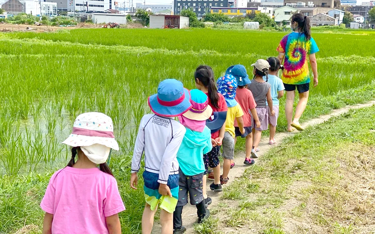 生まれてくる命に知り合うことが嬉しく、楽しみに、そんな人との距離が近い地域。この文化は引き継いでいきたい宝物です。温かい地域性を活かしながら、子ども達が自主的に“やってみよう”を育む場が繰り広げられています。0歳から土や空と仲良く、乳幼児期から友達との遊びが学びにつながり、田畑の空間で、新しいチャレンジの奇跡を巻き起こし、「自由さ」や「好き」が育くまれています。