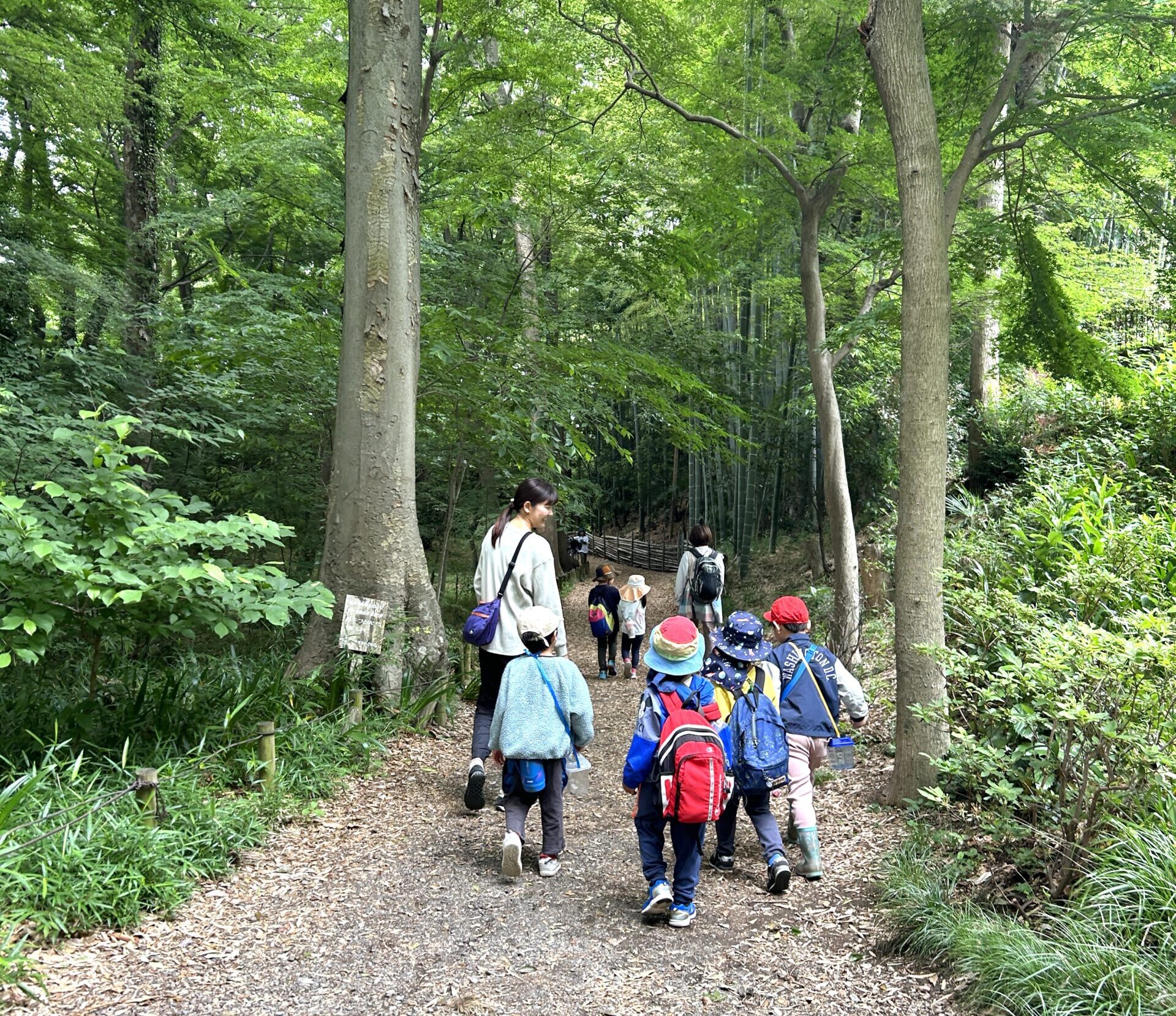 園舎の周りには自然がいっぱい!少し足をのばすと、くにたちはたけんぼ・谷保天満宮・城山公園・ママ下湧水・多摩川といった場所にスムーズにつながります。お散歩での発見を園生活に持ち帰ったり、園生活で知ったことをお散歩先で実際に見聞きしたりと、日常的に体験を重ねていきます。
