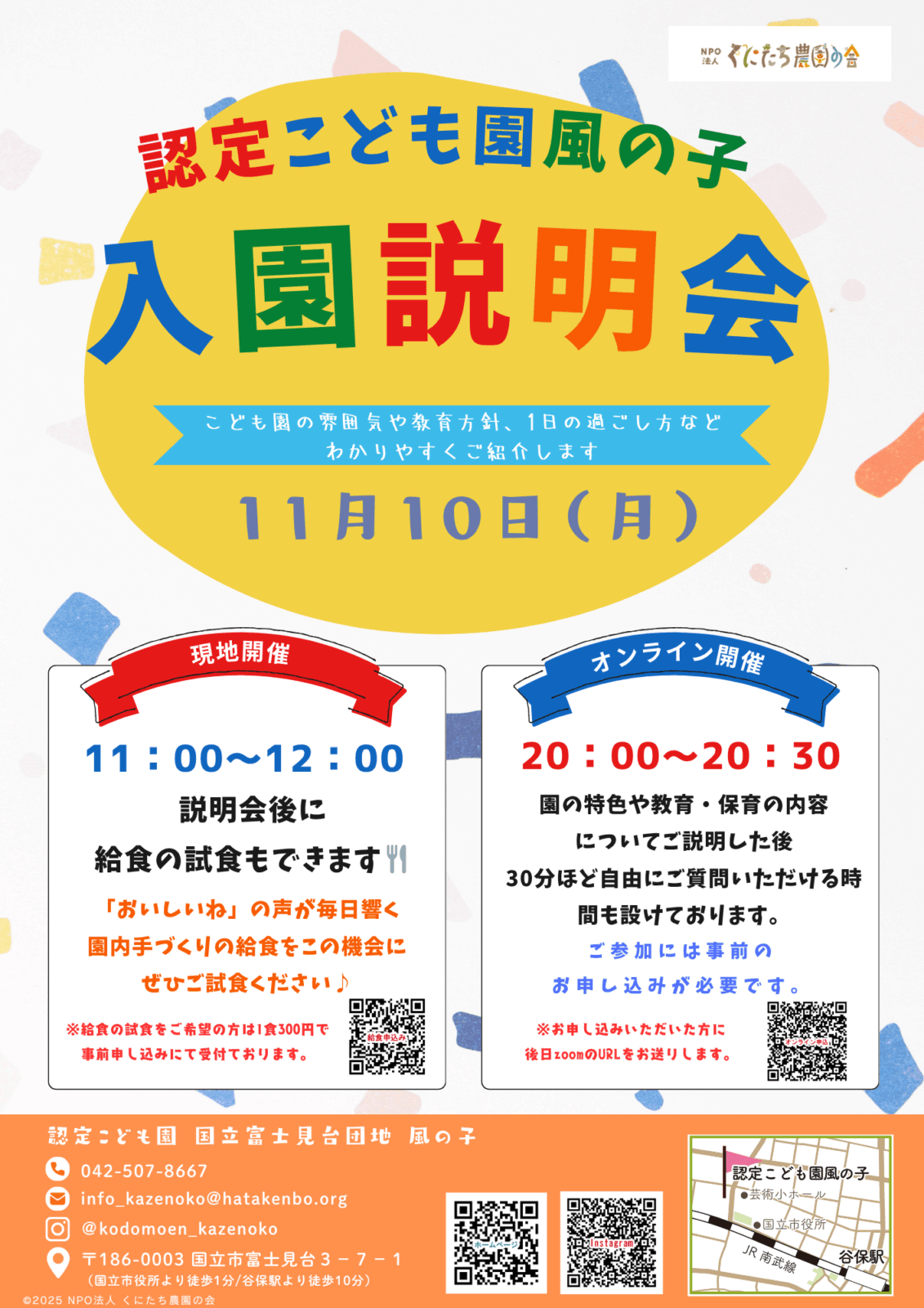 【開催日】現地入園説明会: 11/10(月) 11:00~12:00